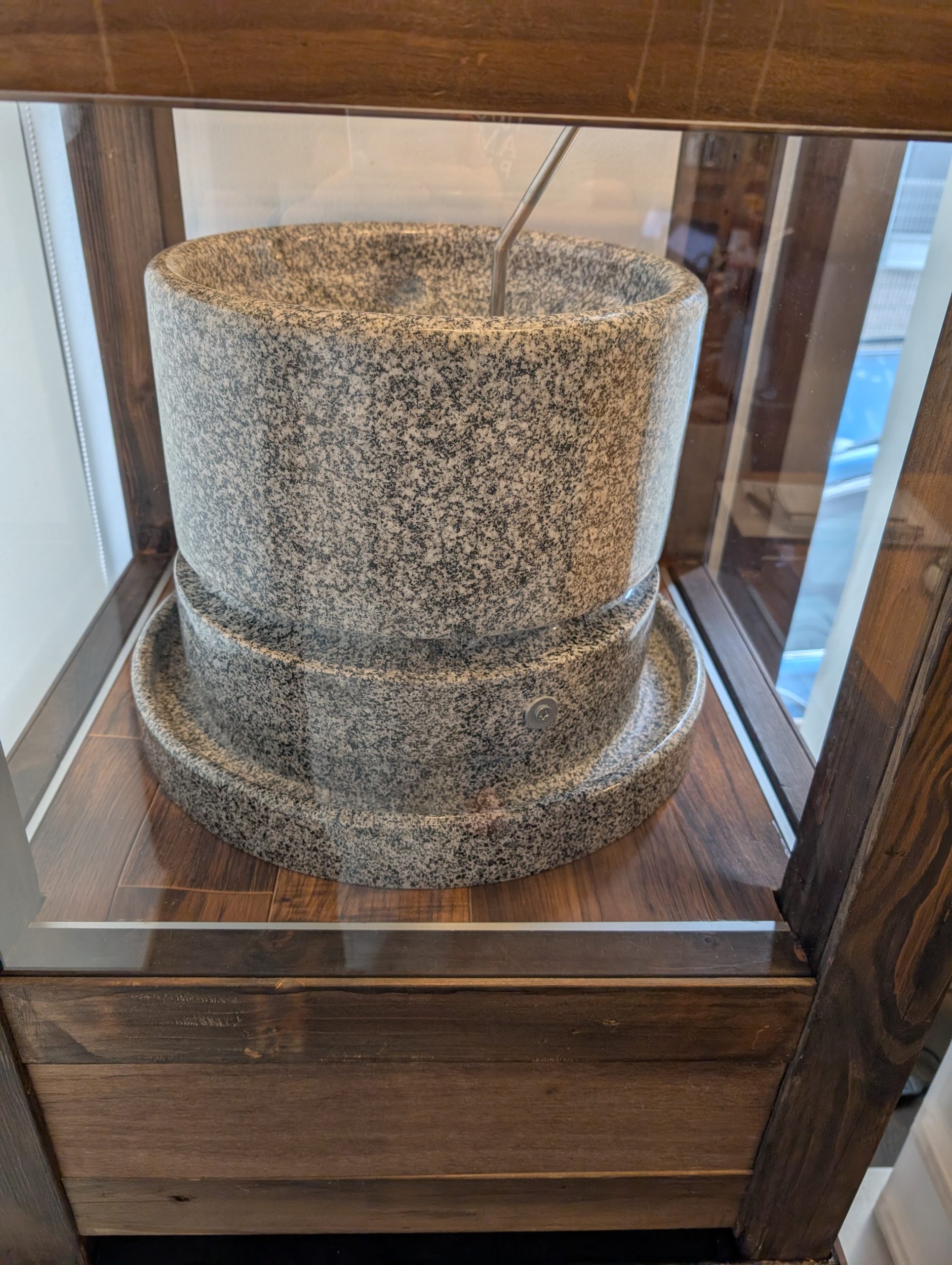 工房に設置した石臼製粉機で